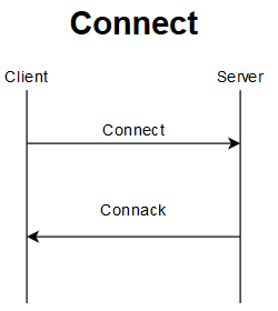 Client is the side, which initializes connection. Client sends a fixed length message of connect type and waits for a response from the server with a connack message. Connack has a fixed length of 1 byte. Connect and connack messages are the same type.